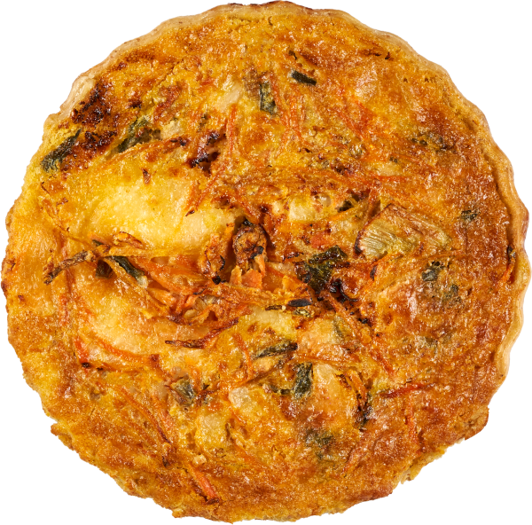 La tarta de zanahoria y verdeo es una excelente fuente de vitaminas esenciales, especialmente la vitamina A. Libre de azúcares, sal y conservantes artificiales, añadidos.